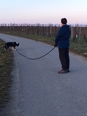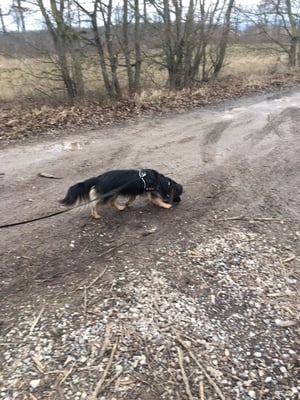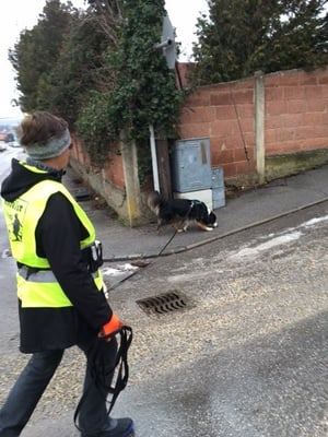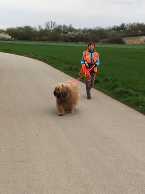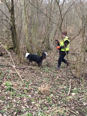 Diese nicht beinflussbaren Faktoren machen gerade das Mantrailen immer so spannend und stellen für die Hunde eine knifflige Aufgabe dar. Heute war es eben besonders bunt gemixt. Naomi startete mit Christine und machte ihre Sache wirklich tadellos. Manchmal zeigt sie ein wenig ungenau an, findet jedoch die Abzweigung ganz gut aus eigenem. Xenia hat eine tolle Nase, nur wenn dann so Umstände wie heute hinzukommen, muss man Xenia ab und zu ein wenig motivieren, dass sie ihre Aufgabe nicht frühzeitig beendet. Beide Damen haben die 2 Kilometer unter 45 Minuten geschafft.