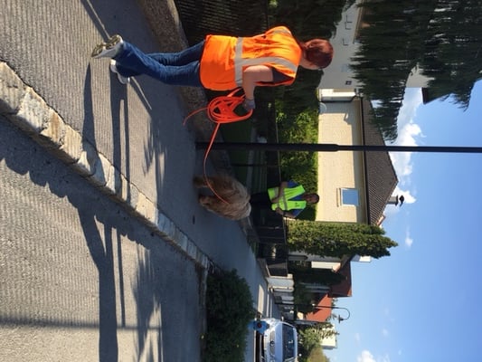 Wir haben aber rausgefunden, dass Lucky in der Stadt dann doch mal ganz gerne über die Spur läuft. Und wenn er sie verloren hat, dann tut er einfach so, als würde er trailen. Schlingel. Aber Lucky - ich weiss doch, dass ´s dort keine Spur gibt....