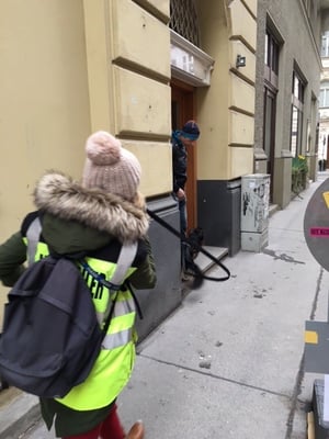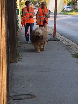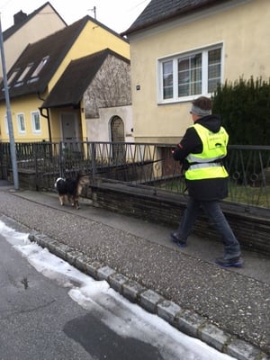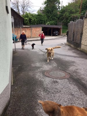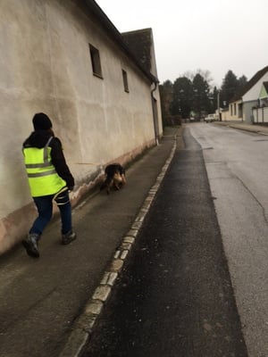 Ortsgefüge Wolkersdorf. Bis auf ein bisschen Motivation zwischendurch unsererseits, hat sie das super gemeistert. Vom Kanalgitter wollte sie partout nicht mehr weg, wo sich Ingrid schon