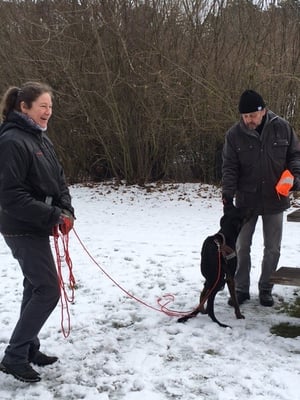 Diese Aufgaben haben die Teams Ute& Manole, Gerlinde & Ginger sowie Gabi & Aeden ganz toll gelöst. Aeden war total lustig. Als er zu Beginn den Geruch von Milo vorgesetzt bekam, sah es so aus, als würde er meinen: "hääähhh, was