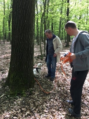 Eine spitzen Truppe waren heut am Samstag, 14.05.2016 Lara, Tobi und Charly beim Mantrailing Übungstag, Level 1-2 mit dem Themenschwerpunkt Mulden und Hügel. Und weil die Hunde schon fast zur Profiliga gehören haben wir "ale Spur vs. frische Spur" noch mit hineingepackt. Während sich Lara grad von der "Stürmerin" zur "Ehrgeizigen" Trailerin entwickelt, ist Charly ein ziemlich eindeutiger "Gewissenhafter" Suchhundetyp und Tobi neigt eher zum "Kombnierer". Aber eines haben die Drei gemeinsam: Sie sind wirklich toll drauf - weiter so - da gehts wirklich in großen Schritten vorwärts. Ich freue mich sehr auf die nächsten Trails mit euch! Danke Pat & Tobi, Christian & Chraly und Vanessa/Marco & Lara, es hat wirklich Spaß gemacht.