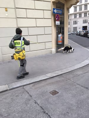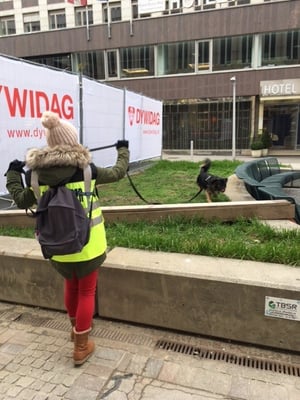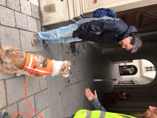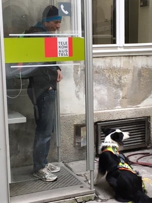 Die beiden Mädls Tina & Gipsy, welche vorwiegend im ländlichen Gebiet trailen, haben das einfach tadellos hingekriegt. Sie ließen sich von den vielen Menschen, den Fiakerpferden und allen anderen Ablenkungen nicht aus der Ruhe bringen. Es hat mir wirklich sehr sehr Spaß gemacht, ich hoffe, wir können das wiederholen.