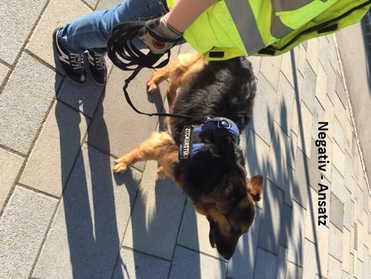 hinmarschiert, weil sie es möglicherweise so gewöhnt sind. Alle standen und meinten: "Da is nix....". Wir bestätigen die Hunde dann sehr rasch, um ihnen die Sicherheit zu geben: Ja, du hast