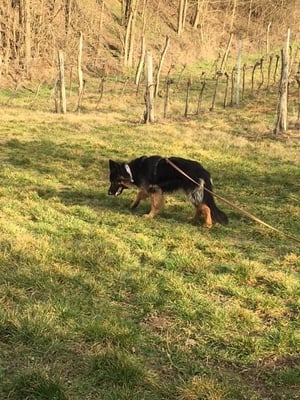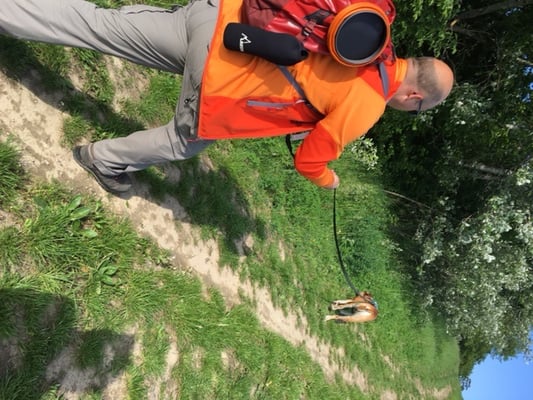 Aeden hat heute seinen ersten richtigen langen Longtrail absolviert, und denn gleich zweimal, 1 Trail mit 1000 Meter, einen Trail mit knappe 900 Meter. Und mittlerweile kommt er nicht mehr zurück zu seinem Frauli und sagt: "na los... sag....", mittlerweile "horcht" er auf seine Nase und das lohnt sich! Schauts euch unten das Foto vom stolzen Frauli an.