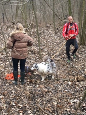 Nette Veranstaltungen am Osterwochenende. Am Samstag, 26.03.2016 trafen wir uns schon zeitig in der Früh zum Teamtrail im Hochleithner Wald. Wir starteten gemeinsam und bewegten uns auf einer etwa 6 km-Strecke auf dem Weg zur Versteckperson Helmut. Wir gestalteten den Trail so, dass die Hunde solange trailen durften, bis wir erkennen konnten, dass die Motivation oder Konzentration nachlassen. Hier wurde der Hund mit Pauken und Trompeten aus der Arbeit genommen und der nächste Hund auf die Spur zur Zielperson gesetzt. Am Ende kamen alle zum Erfolg da jeder von ihnen die VP finden durfte. Für Aeden war dies der erste Longtrail, er schaffte heute ganze 1000 Meter, wirklich super Aeden!!! Danach startete Lucky die Suche. Lucky war sehr zügig unterwegs, nach etwa 1700 Meter zeigte er uns deutlich an, dass er im Moment nicht mehr weiterkönne. Lucky rutscht dann immer am Bauch hin und her und beginnt sich zu rollen. Als 3. Starter war Freddie an der Reihe. Er durfte auf einer großen Kreuzung mit Wiesen und Felder und gleich mal den richtigen Weg finden. Hier allein arbeite Freddie gute 5 Minuten, eher er sich für eine Richtung entschied. Freddie marschierte gute 3 Kilometer in einem durch zur Zielperson. Und wie gesagt, starteten dann noch mal Lucky und Aeden die letzten 500 Meter zur Zielperson, wo alle müde aber happy die Zielperson erreichten. Sehr gut wart ihr wieder. Drei tolle Teams waren da wieder am Start. Ich freue mich schon aufs nächste mal!!!