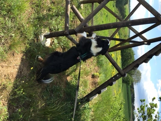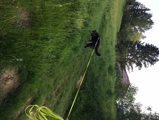 Sehr beeindruckender Abenteuertrail heute am Muttertag, 08.05.2016 mit Daniela & Gipsy. Ein Abenteuertrail zeichnet sich durch das vielseitige Gelände und nicht berechenbaren Abzweigungen aus. Er verlangt von koordinativer und sportlicher Seite für den Menschen einiges ab. Es gibt immer ein wenig zu klettern, kriechen, hinunterrutschen....,sodass auch der Mensch nach den 3 Kilometer ganz schön geschafft im Ziel ankommt. Speziell bei diesem Trail gilt seinen eigenen Schritt und den des Hundes gut zu kontrollieren. Daniela & Gipsy schafften genau 3160 Meter in knappe 40 Minuten, und das ist einfach eine hervorragende Leistung. Selbst schwierigste Abzweigungen z.B. von einem ausgetretenen deutlichen Wiesenweg in hohe Gras ohne Anzeichen eines Weges - dann steil rauf auf den Hügel - Gipsy nahm den Abschnitt 1 zu 1 exakt in Angriff. Also ich muss wirklich immer staunen und lächeln wozu manche Hunde fähig sind, und dann noch in dem Tempo.