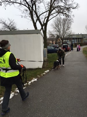 Menschengerüchen, Pferden und allen anderen Eindrücken die Versteckperson die in einem Hauseingang 30 Meter entfernt lümmelt. Die Hunde waren sehr gefordert, nicht nur wegen dem starken