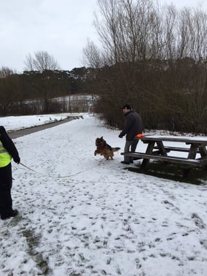 Da es Samstag wie wild runtergeschneit hat, haben wir den Sonntags Trail vom Themenbereich "Kreuzungen...." abgeändert und wir nahmen die Herausforderung an "Trailen am Schnee". Was für die Menschen eine Herausforderung aufgrund der rutschigen Bodenverhältnisse und dem unwegsamen Gelände darstellte, so lösten die Hunde ihre Schnüffelaufgabe am Schnee mit bravour.