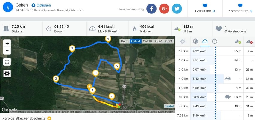 Wow - echt Xenia.... da haben wir uns nicht nur alle gefreut sondern ganz schön gestaunt!!! Manfred und ich haben den Trail gelegt und sind die Strecke in 31 Minuten gegangen. Xenia war in 40 Minuten am Ziel!!!! Ganz ganz Super!!!!